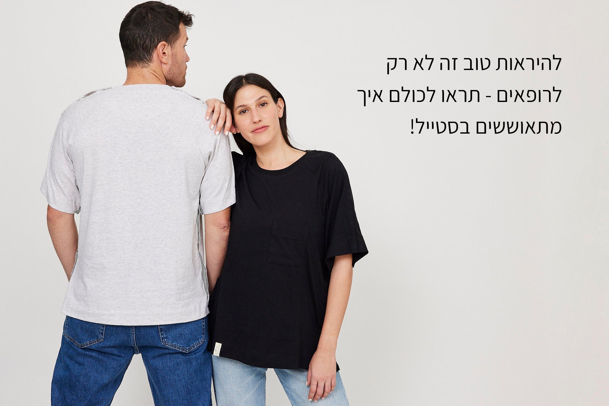 "החולצה הזו הייתה המקום הבטוח שלי במהלך חודשים ארוכים בבית החולים. היא הייתה רכה, פונקציונלית, ומלאה בסטייל. תזכורת לכך שהחלמה לא חייבת להרגיש קלינית ומנוכרת."